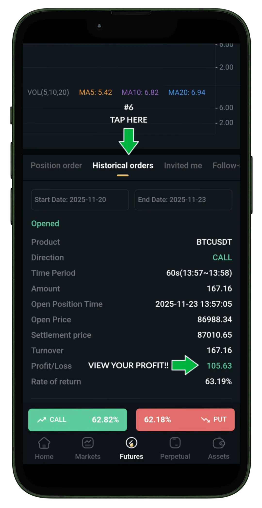 Images reflect a trade from an actual account. For informational purposes only. Results will vary. Consult with a financial advisor for professional advice.